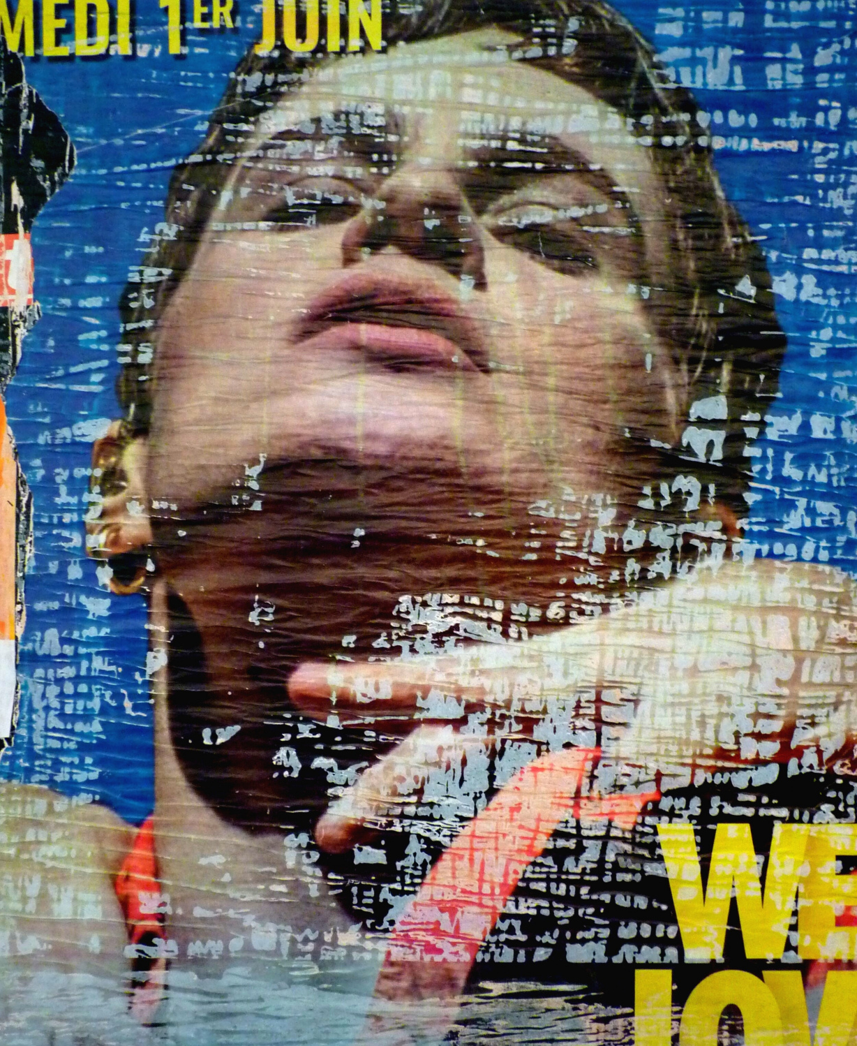 Melant ses inspirations variées à sa recherche permanente d'images, l'artiste qualifie son travail d'abstraction figurative. Ses tableaux sont constitués d'affiches originales amassées lors de ses frequents voyages à Berlin, Paris ou Amsterdam.